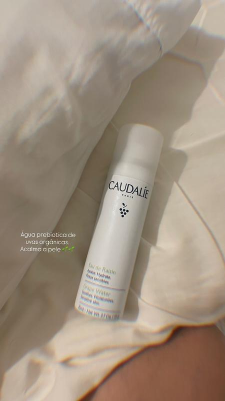 Extraída de uvas orgânicas durante a colheita, a Água de Uva é um best-seller da Caudalie e 100% formulada com água vegetal hidratante e calmante.